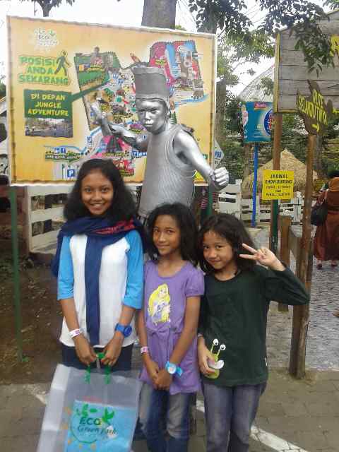 Setelah itu kami berfoto-foto di tempat berfoto dengan gambar-gambar yang kelihatannya seperti beneran. Tetapi itu tetap di Eco Green Park. Lalu kami makan di foodcourt-nya dan terapi ikan. Rasanya saat terapi ikan itu geli. Dan tidak lupa kami berfoto-foto lagi di miniatur candi-candi. Dan akhirnya kami pulaaang…
