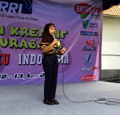 Halo teman-teman 🙂 Hari ini, aku mengikuti lomba bercerita di Gedung RRI (Radio Republik Indonesia) Surabaya. Ini adalah pengalaman pertamaku bercerita di hadapan banyak orang. Saat kesana, aku ditemani 2 guru dan 2 kakak kelas 3 yang juga ikut lomba bercerita. Gurunya yang menemani bernama Pak Cholis dan Pak Fathoni. Sementara kakak kelas yang juga ikut lomba bercerita bernama kak Princessa dan kak Marsha (maaf kalau penulisan nama salah).
