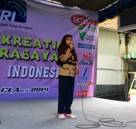 Saat sampai di gedung RRI, ternyata ada banyak lomba. Ada lomba bercerita, Fashion Show, Mengarang lagu, kolase, dan lain-lain. Tempatnya juga berbeda. Untuk yang Fashion Show dan bercerita, tempatnya di halaman gedung RRI. Sementara, kalau mengarang lagu dan kolase, tempatnya di dalam gedung RRI.