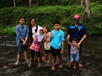 Disana kami sempat merendamkan kaki ke kolam besar, karena memang diperbolehkan. Air yang ada di kolam itu dingiiiiiin sekali, tapi aku masih cukup tahan. Setelah merendamkan kaki, kami berfoto-foto dulu. Setelah itu kami pergi ke sungai yang ada di dekat kolam. Arus di sungai itu tidak begitu keras. Jadi tidak khawatir kalau kena arus. Yaa, walaupun aku sempat takut terbawa arus juga sih, hihihihi…. 😀 Air sungai itu juga jernih.