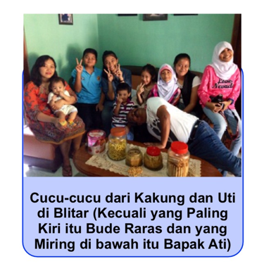 Setelah menemui saudara-saudara di Surabaya, aku, mamski dan papski pamit pergi dulu untuk ke Blitar lagi. Aku sampai di Blitar sekitar jam 8 malam. Mbak Alya, Mbak Fifi dan Mbak Risma belum tidur karena menungguku. Kami bermain-main dulu sebentar, baru ketika semuanya sudah mengantuk, kami langsung ke kamar masing-masing. Besoknya kami melakukan hal-hal yang sama seperti yang dilakukan sebelum ke Panceng, tapi malamnya, kami sempat berfoto bersama dulu karena besok pagi-pagi mbak Alya dan Mbak Fifi sudah kembali ke Cirebon. Hari waktu Mbak Alya dan Mbak Fifi pulang itu rasanya sepiiii sekali… Aku jadi agak sedih 😦