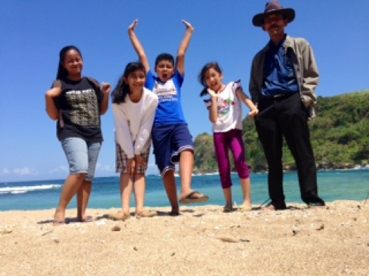 Teman-teman, kalian masih ingat tidak, di tulisanku sebelumnya aku menyebut bahwa pada hari Sabtu aku pergi ke Pantai? Ini adalah cerita tentang itu. Aku, mamski, papski, Mas Dimas, Mbak Irma, Mbak Risma dan kakung pergi ke Pantai Pangi. Ceritanya kenapa kami pergi kesana adalah karena seperti kutulis sebelumnya, hari Sabtu itu rasanya sepii skali karena keluarga Bapak Nunun sudah pulang ke Cirebon. Makanya biar tidak sedih kami sekalian berpetualang karena kami semua belum pernah ke Pantai Pangi, kecuali mamski. Itupun mamski kesana waktu mamski masih kelas 1 SMA.