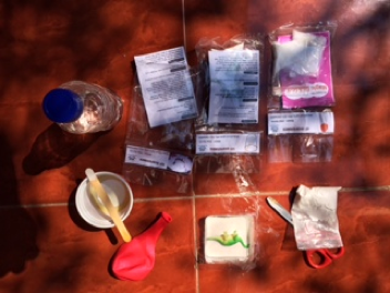 Setelah mencoba Magic Ballon, aku dan papski mencoba eksperimen Lem Ajaib. Bahannya adalah tepung tapioka, air, wadah plastik, stik untuk mengaduk dan cairan biuret. Oh iya, untuk cairan biuret ini kita harus berhati-hati untuk menggunakannya, karena kalau terkena kulit sensitif bisa membuat gatal-gatal. Cara membuatnya, campur tepung tapioka dan air di dalam wadah plastik. Lalu tambahkan sedikit demi sedikit cairan biuret ke dalamnya, dan aduk pelan-pelan sampai merata. Semakin lama diaduk, cairan itu akan semakin kental dan lengket. Jadilah lem ajaibnya.. π Dari eksperimen ini, aku belajar tentang perubahan wujud benda dari cairan menjadi kental, lalu ada perubahan warna dari warna cairan biuret yang biru menjadi bening.