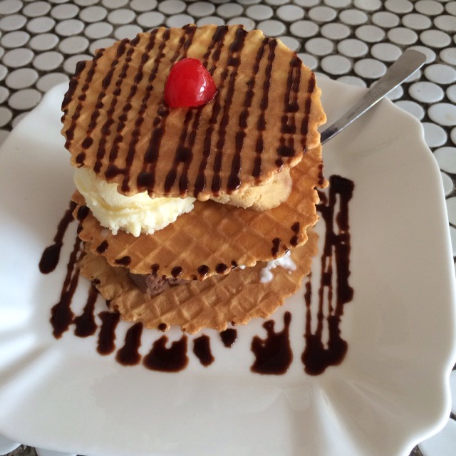 Jadi, tempat pertama yang kami kunjungi adalah es cream Zangrandi. Saat itu aku memesan Couple Brazilian, mamski memesan Banana Split, dan papski memesan Rock Star. Oh iya, kami juga memesan BBQ Pizza dan ice cream soda. Menurutku semuanya enaaaaaaaakkk di ice cream Zangrandi. Apalagi Pizza-nya yang rotinya crispy tapi krimnya semacam lembut gitu. Hmm… Jadi pengen ke sana lagi kapan-kapan..