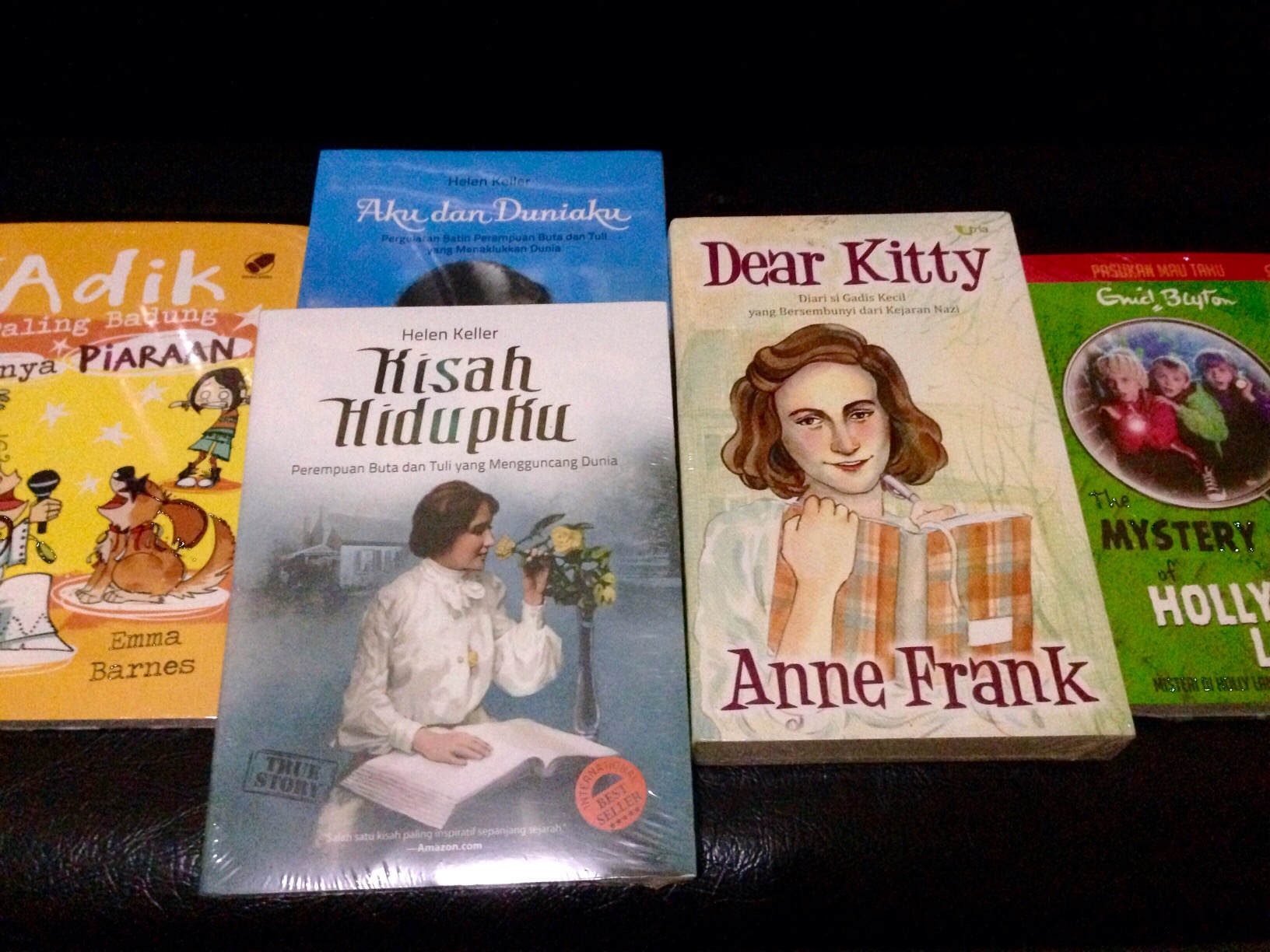 Tujuan kedua adalah pergi ke toko buku Togamas. Disana aku membeli buku serial Pasukan Mau Tahu, buku tentang kisah kehidupan Hellen Keller, dll. Papski dan mamski juga membeli beberapa buku. Tapi tiba-tiba waktu di sana….Lampu Togamas mati! Untung saja ada banyak jendela, jadi tidak gelap sekali. Lampu di Togamas mati karena ada hujan yang sangat deras. Tapi mati lampu itu tidak berlangsung lama, mungkin hanya beberapa menit saja.