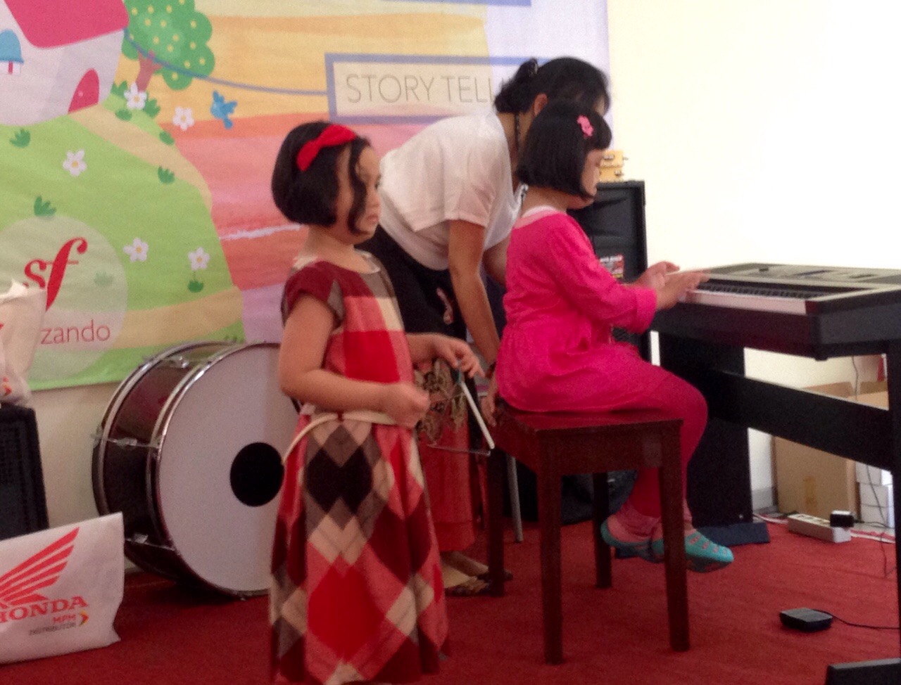 Saat Kelas Konser, ada beberapa acara. Diantaranya, Story Telling bahasa Inggris, Piano, Vokal, Pembagian Doorprize, dan Quiz. Aku paling suka itu melihat penampilan vokal dari Anya yang ibunya adalah guru Sforzando dan ayahnya yang pintar bernyanyi. Anya saat itu menyanyikan lagu I See The Light-Tangled bersama ayah dan ibunya. Ayahnya yang bernyanyi bersama Anya dan ibunya yang bermain piano. Bagus sekali.