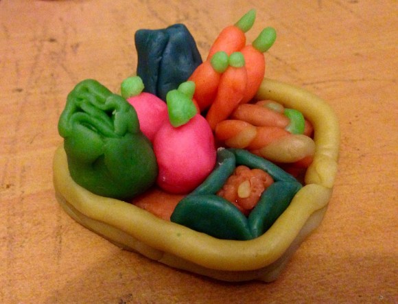 Beberapa hari ini, aku sedang suka bermain plastisin. Kalau tidak salah mulai hari Jum’at kemarin. Tapi sampai hari ini, aku baru berhasil membuat beberapa bentuk seperti gambar yang ada di bawah ini. Yaitu polisi bebek dan keranjang yang penuh dengan makanan. Ada siomay, permen, dan keripik kentang. Hihihi… Campur-campur ya 😄