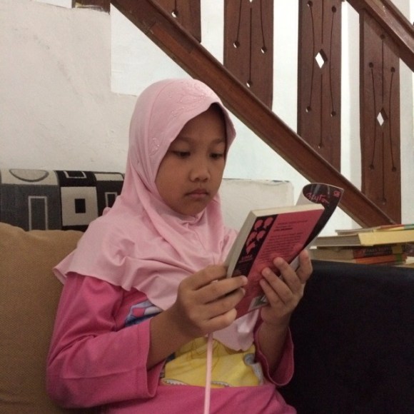 Hari ini, aku dan papski pergi ke Perpustakaan Bait Kata yang ada di Perumahan Larangan Mega Asri. Dilihat dari luar, perpustakaan itu seperti rumah biasa. Namun, di dalamnya ada banyak kumpulan buku. Penjaganya ada 2 yaitu kak Maria dan kak Rima (maaf jika penulisan nama salah). Perpustakaan itu terdiri dari 2 lantai. Koleksi buku anak-anaknya antara lain: 2 buku Secret Seven, Eliana, Pukat, Burlian, Amelia, 4 Malory Towers, 1 serial lengkap 5 Sekawan, dll. Oh iya, di perpustakaan Bait Kata itu juga mempunyai beberapa novel sepanjang masa lho.
