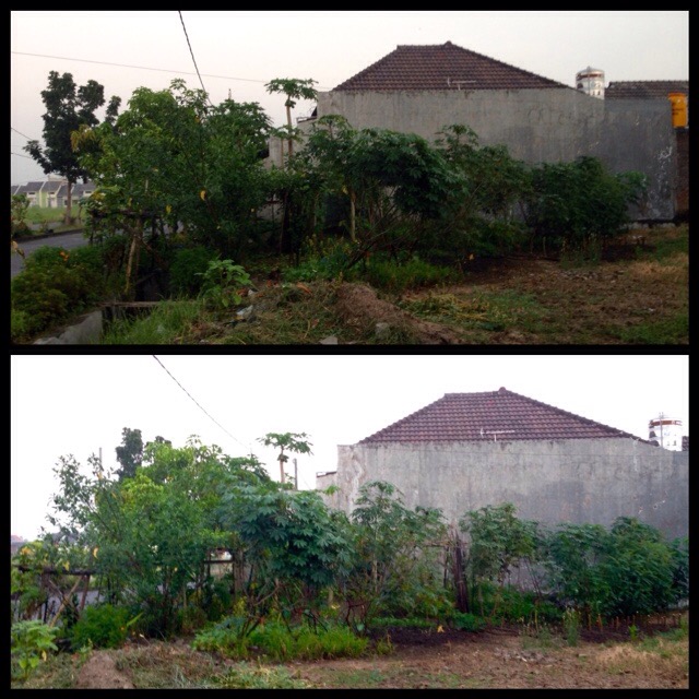 Yang pertama, waktu lari di belakang perumahan, aku dan mamski melihat kebun kecil milik eyangnya adik kelasku dulu saat masih TK. Kebunnya ditanami beberapa macam buah-buahan dan sayuran, seperti ubi, pepaya, dan lain-lain. Kebun itu sebenarnya adalah tanah kosong yang dimanfaatkan untuk menanam sayur dan buah. Menurutku, kalau punya kebun seperti ini kelebihannya adalah kita bisa memetik sayuran atau buah-buahan yang segar dari kebun sendiri. Jadi tidak perlu pergi ke pasar, atau mencari tukang sayur. Kebun seperti itu juga membuat lingkungan menjadi lebih hijau dan sehat.