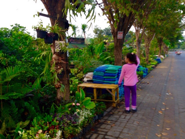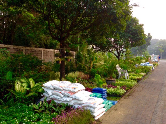 Kembali soal jalan-jalan, sampai di area depan perumahan, kami melihat-lihat beberapa stand tanaman yang ada di sebelah kanan dan kiri jalan. Stand-stand ini sebenarnya baru, tapi pengunjung yang beli juga sudah lumayan banyak. Dulu sebelum ada stand-stand tanaman hias ini, jalan masuk di perumahanku terlihat gersang dan tidak enak dipandang. Tapi begitu ada beberapa stand ini, jalannya berubah menjadi lebih asri. Apalagi setelah ada stand-stand ini, tempat pembuangan sampah yang dari jauh biasanya terlihat sangat kotor sekarang menjadi tertutupi, dan sampah yang berserakan menjadi berkurang.