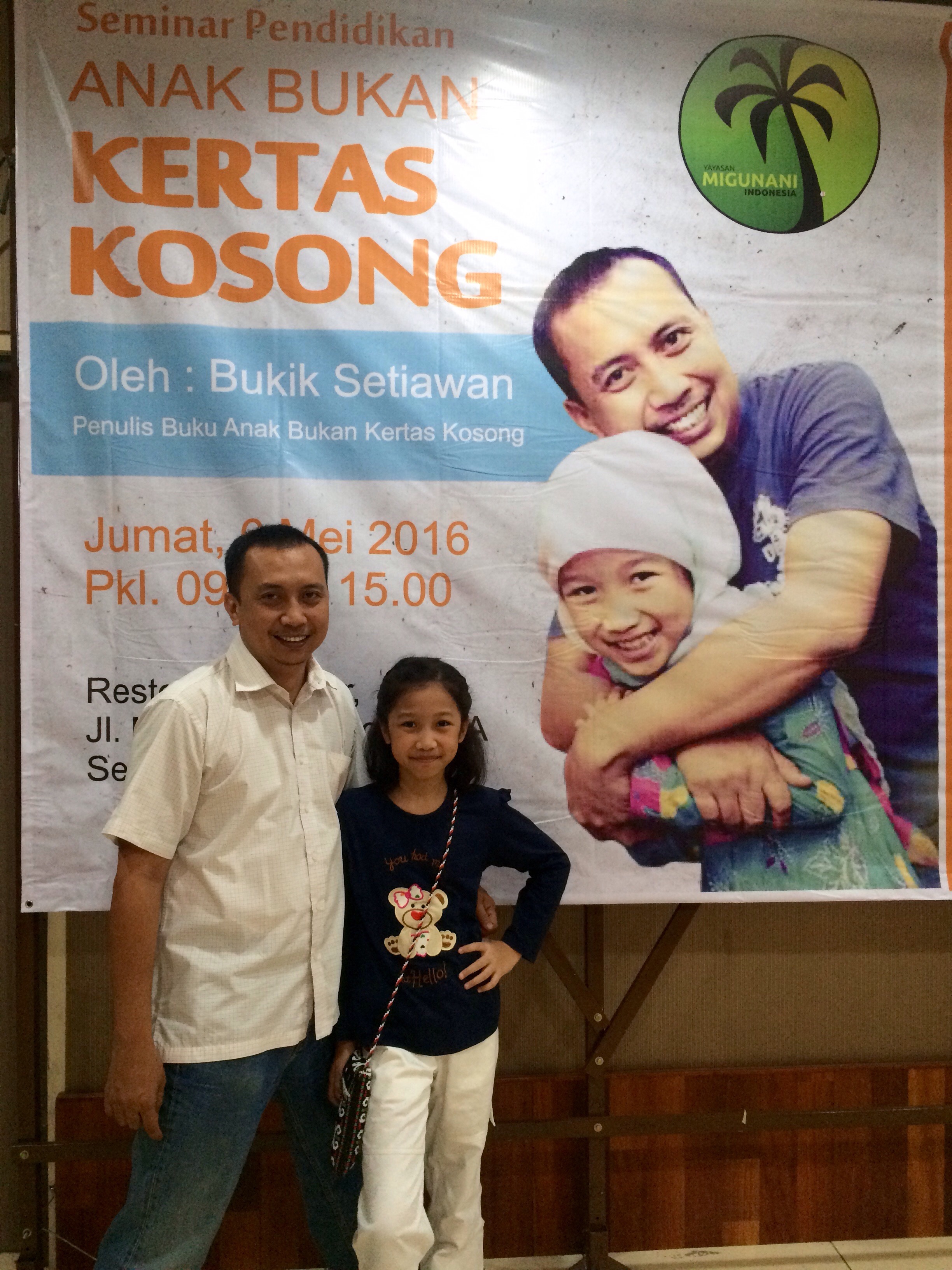 Nah, di hari kedua aku ke Semarang, aku dan mamski pergi menemani papski yang ada acara yaitu Seminar Pendidikan Anak Bukan Kertas Kosong. Kami berangkat dari hotel cukup pagi. Untung saja papski mempunyai aplikasi peta yang memudahkan papski untuk mencari restoran tempat seminar dilaksanakan. Jadi sampai sana, masih belum terlihat ada banyak orang yang datang. Yang ada hanya beberapa panitia dan putra-putri dari panitia tersebut.
