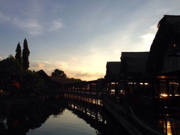 Habis dari MAJT, kami merasa kalau perut kami sudah kelaparan. Akhirnya, papski mengajak kami ke salah satu restoran di sana. Restoran yang pertama kali kami kunjungi itu merupakan restoran laut yang mempunyai view yang baguus bangeet. Aku juga sempat berfoto di sana. Sampai-sampai, karena view yang bagus itu, kami lupa laparnya. Setelah berfoto, kami pun mendapat kabar dari salah satu pelayan bahwa makanan baru ada 1 jam setelah kami memesannya! 😭 Memang saat kami lihat-lihat di restoran laut yang pertama ini, terlihat sedang ada reuni gitu. Jadi ada banyak sekali orang yang datang.