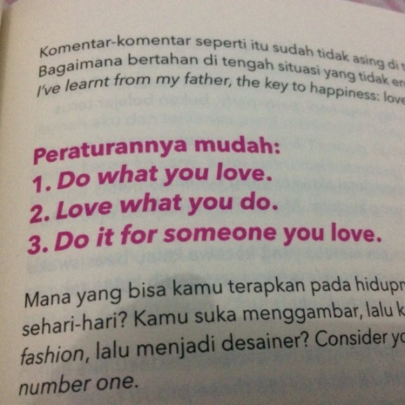 Karena pesan ayahnya inilah, Nia dapat bertahan. Ia ingin orangtuanya merasa bangga atas dirinya. Dan dia menyampaikan juga tiga hal ini ke pembaca untuk memotivasi mereka yang sedang menghadapi situasi sulit.