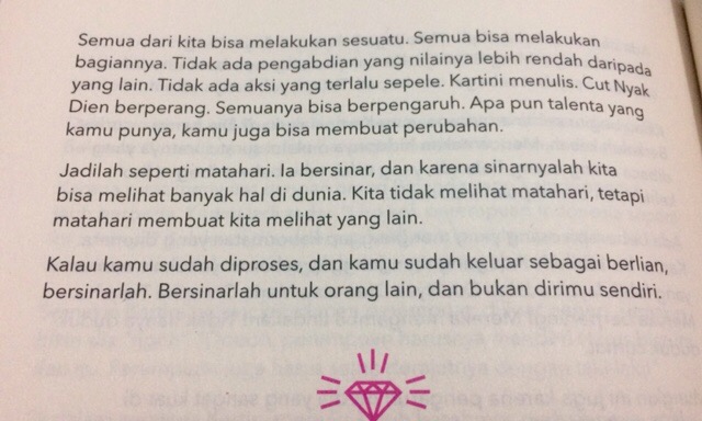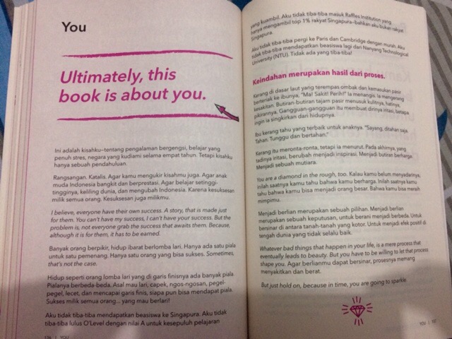 Sudah lama aku tidak meresensi buku dan aku akan menulisnya sekarang. Resensi kali ini adalah tentang buku Diamond in the Rough. Diamond in the Rough ialah buku non-fiksi yang ditulis oleh Nathania Christy. Buku ini kudapatkan di Cuci Gudang Gramedia yang kuceritakan beberapa hari yang lalu. Meski hanya berharga 5000 rupiah, namun ternyata isi buku ini menurutku sangat bagus, memuat banyak pelajaran penting yang juga memotivasi pembacanya.