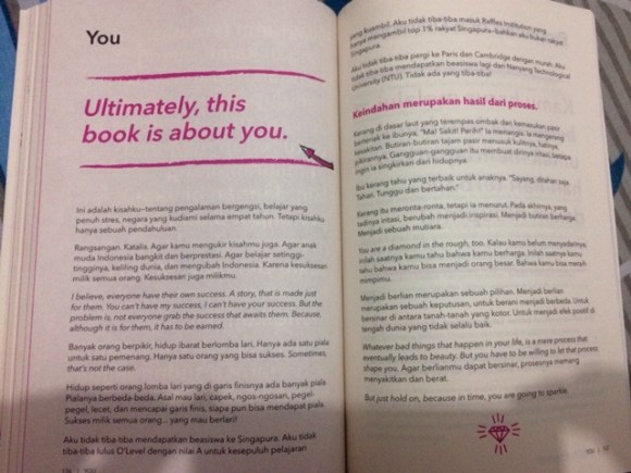 Satu hal utama tentang isi buku Nia yang ingin kuberitahu ke teman-teman semua adalah tentang pendidikan di Singapura yang kubilang sangat ketat dan sulit. Fakta-fakta di buku ini mungkin akan membuat kalian tercengang kalau membacanya. Seperti contoh, teman-teman Nia yang asli Singapura di Junior College-nya sangat -atau maksudku terlalu- tekun belajar! Hal itu dikarenakan sifat umum orang Singapura yang disebut dengan “kiasu”.