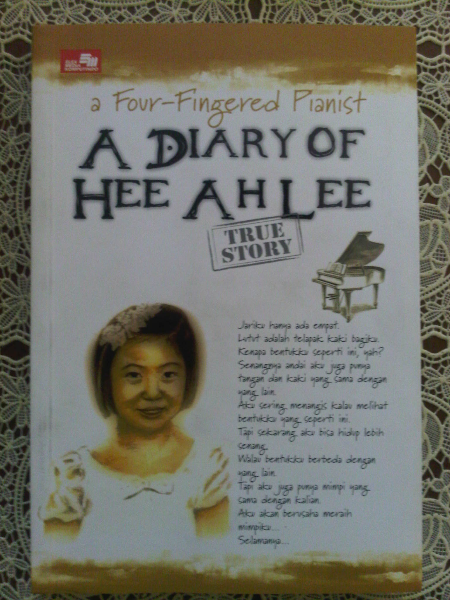 Pagi hari, setelah sarapan aku bermain dengan boneka berbieku. Lalu aku melihat-lihat lemari buku milik mama dan bapakku. Disana aku lihat ada buku tentang kehidupan sehari-hariannya Hee Ah Lee. Aku pernah tahu Hee Ah Lee dari TV, lalu aku minta ijin mamaku untuk membaca buku itu. Karena diperbolehkan, aku membaca buku itu.
